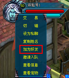 2)可点击在线玩家的头像,弹出功能列表,在列表中选择【加为好友】功能