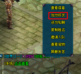 3)在聊天框点击玩家的名字,在弹出的功能列表中选择【加为好友】