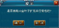 背包里的按钮花费一定的金叶子进行扩充
