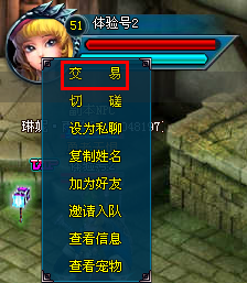 点击玩家头像,在出现的功能菜单处选择【交易】即可和玩家进行交易。
