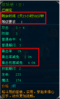 | 增加技能躲闪 | 5 | 10 | 20 |