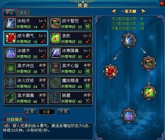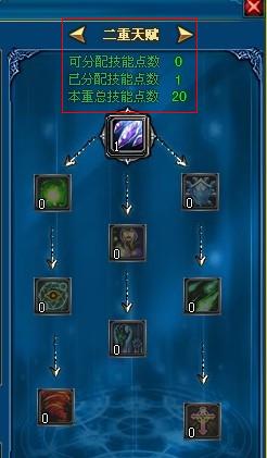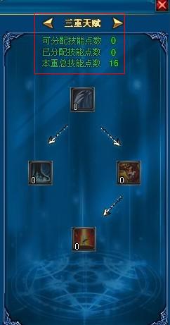 技能中分三重,每一种都限定总分配点数,玩家可根据自身职业去分配。