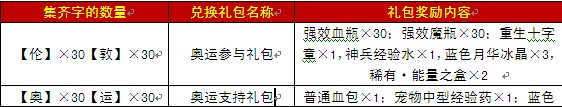 7.怪物被击杀后会随机掉落【伦】【敦】【奥】【运】【中】【国】【加】【油】8个字及其他道具,玩家收集对应的字后可以到主城NPC【活动兑换——莉莉雅】处换取礼包;