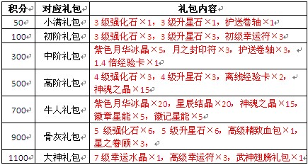 3.活动结束后,玩家不会再获得积分,剩余积分在两天后清零,玩家务必在积分清零前兑换成礼包;