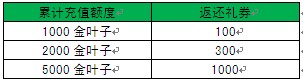 活动期间,玩家累计充值并成功提取相应额度的金叶子,即可返还礼券奖励,返还的礼券通过系统邮件方式赠送;