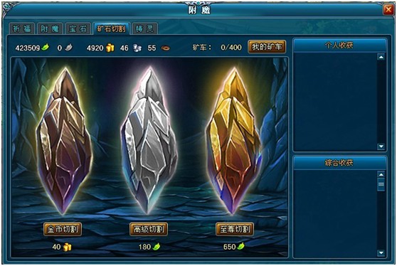 注意:金币切割获得的宝石是绑定的;