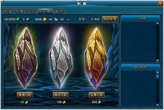 75级以上玩家可通过【附魔】→【矿石切割】获得各种宝石。