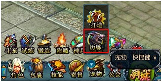 玩家点击宠物系统图标,选择上拉菜单中的【历练】,即可打开宠物历练面板。
