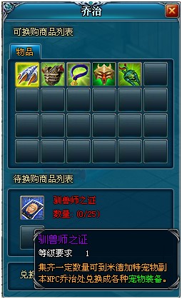 每个小关卡低概率掉落【驯兽师之证】(绑定),集齐一定数量可到【宠物副本NPC】乔治处兑换成相应的宠物装备(绑定)。