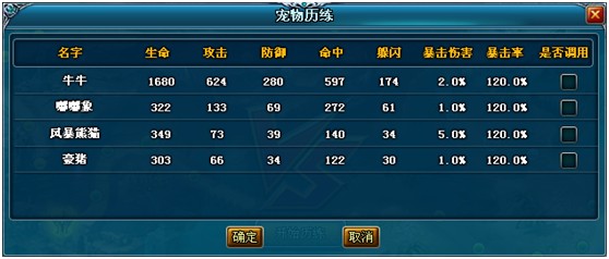 每次宠物历练要求玩家的宠物必须参加,辅助的宠物可以没有。