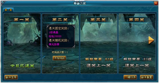 1、神谕之战分多个章节,每个章节包含多个关卡,每个关卡都需要玩家个人挑战完成;