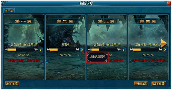 玩家可以通过点击【快速完成】按钮,快速完成扫荡。