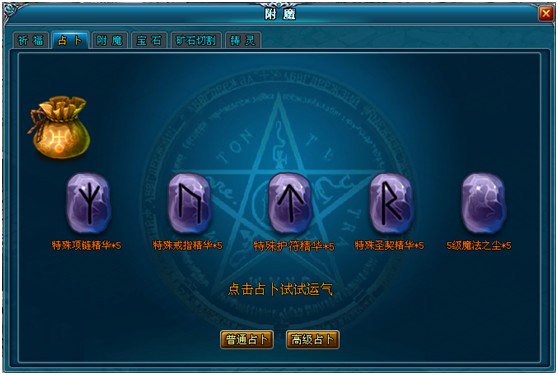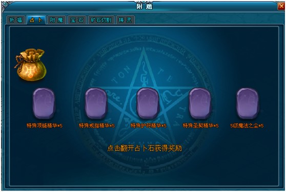 PS:高级占卜可获得高等级的特殊的饰品精华。