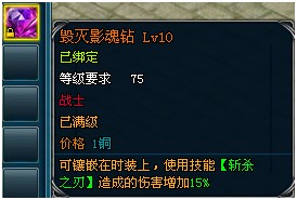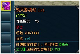 | 毁灭影魂钻 | 斩杀之刃 | 造成的伤害增加0.75%--15% | ||