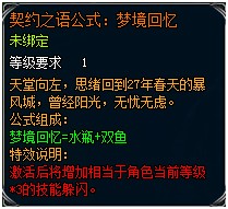 4.在领取“萨萨里安的灵魂”任务的情况下,将禁魔广场的大BOSS成功击杀将有几率获得“萨萨里安的灵魂”,将其交给NPC奥斯海姆,将获得“契约之语公式:梦境回忆”,可通过【锻造】→【契约】中激活契约之语“梦境回忆”后将增加相当于角色当前等级3倍的技能躲闪效果。