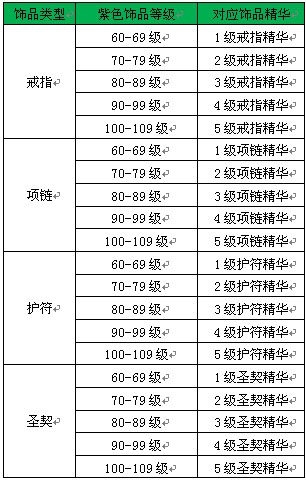 不同等级的紫色饰品需要用不同等级和对应类型的饰品精华进行附魔。