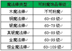魔法棒的级别越高,可附魔的饰品等级上限越大。